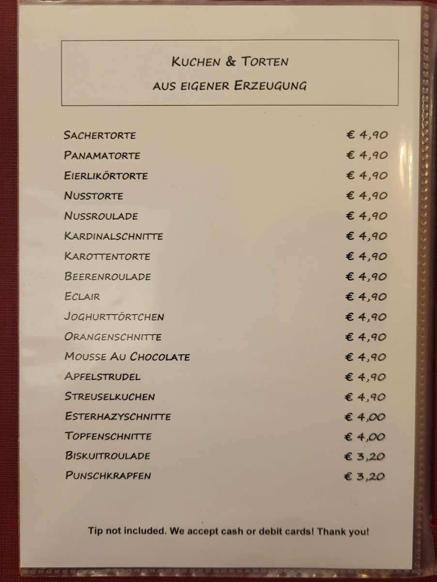 The cafe’s friendly staff enhance the experience, offering personalized recommendations that make navigating the German-only menu a breeze. Whether you're starting your day with a classic Handsemmel breakfast or indulging in a creamy Einspanner, the quality and care in every dish is unmistakable. With inviting decor and a tranquil setting, Cafe Konditorei Ingrid Burger is a must-visit for coffee aficionados and dessert lovers alike.